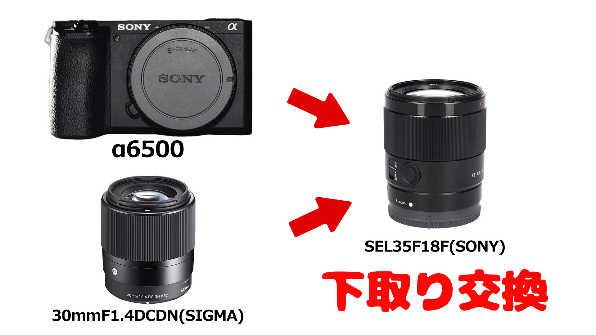 現在所有しているカメラ機材は、SONYミラーレス一眼のα7cⅡ(フルサイズ)とα6700(APS-Cサイズ)にα6500(APS-Cサイズ)の3台。 内α6500の使用頻度は、年1回程度と非常に低い為、下取りに出してフルサイズ対応の単焦点レンズを購入することにしました。